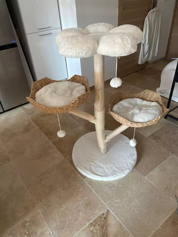 Chaque modèle est pensé pour permettre au chat de combler son besoin de jeu, de repos et d’exploration, tout en l’aidant à surveiller son territoire et à marquer son territoire de façon naturelle grâce à des surfaces recouvertes de sisal.